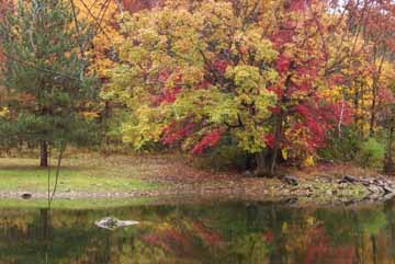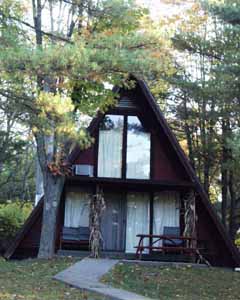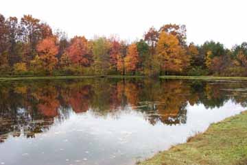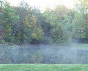 One of the A-Chalets Early morning mist coming on one of the ponds